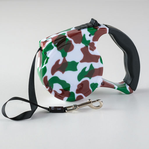 Рулетка с поводком-лентой, резиновая ручка, 5 м, вес животного до 15 кг, расцветка милитари