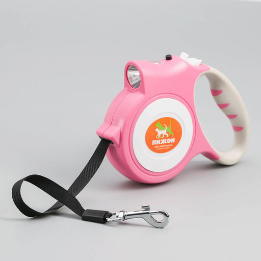 Рулетка "Пижон" с фонариком, прорезиненная ручка, 5 м, до 35 кг, розовая