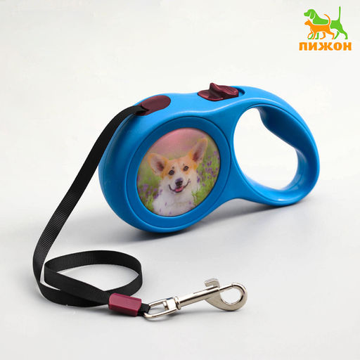 Рулетка с принтом "Милашка", 5 м, вес животного до 15 кг, синяя