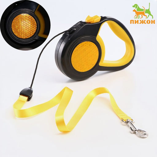 Рулетка "Пижон" светоотражающая, 3 м, до 15 кг, трос, прорезиненная ручка, жёлтая