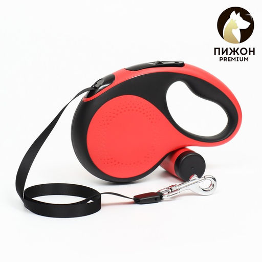 Рулетка Пижон Premium со светодиодным фонариком, контейнером под пакеты, лента 5 м, до 30 кг 94414