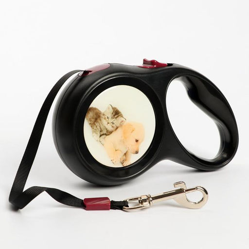 Рулетка с принтом "Милашка", 5 м, вес животного до 15 кг, чёрная