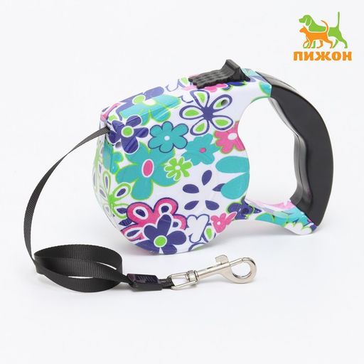 Рулетка с поводком-лентой, резиновая ручка, 5 м, вес животного до 15 кг, цветы