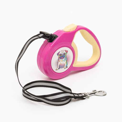 Рулетка "Пижон" с прорезиненной ручкой, 3 м, до 15 кг, трос, розово-жёлтая