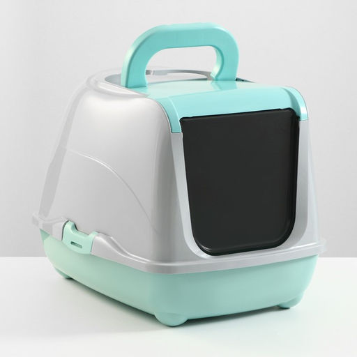 Туалет-домик для кошек закрытый с дверцей 50*38*37 см, бирюзово-серый