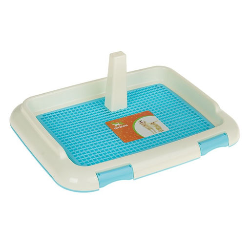 Туалет для собак 46,5 х 35,5 х 5,5 см, со съёмным бортом, решеткой и столбиком, голубой