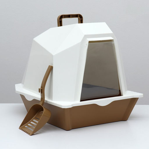 Туалет для кошек фигурный закрытый с совком, 54 х 37 х 40 см, бело-коричневый
