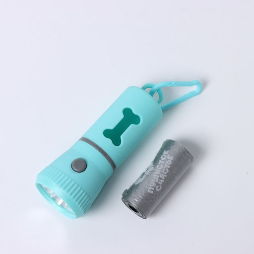Контейнер с фонариком, пакеты для уборки за собаками (рулон 15 шт), голубой