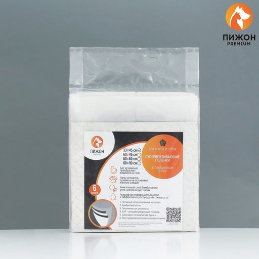 Пеленки угольные шестислойные гелевые, 33 х 45 см, (в наборе 10 шт)