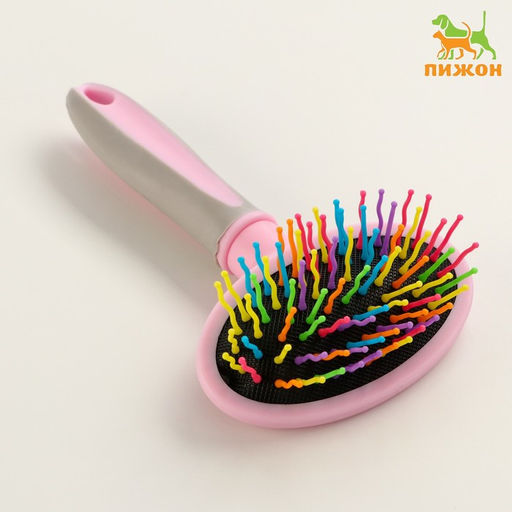 Пуходерка пластиковая мягкая с волнистыми зубьями, средняя, 9,5 х 16,5 см, розовая