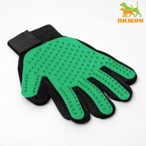 Перчатка - щетка для шерсти на правую руку с удлиненными зубчиками, зелёная
