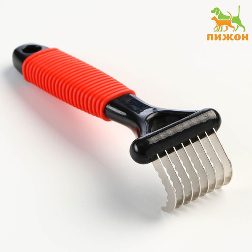 Колтунорез загнутый, 8 лезвий, 5,5 х 15 см, чёрно-красный
