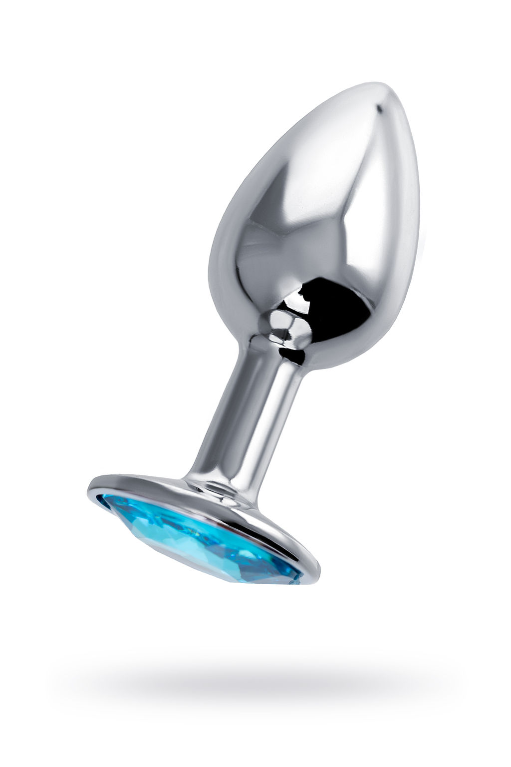 Анальная втулка Штучки-дрючки, металл, серебряная, с голубым кристаллом, 7 см, 2,8 см, 50 г