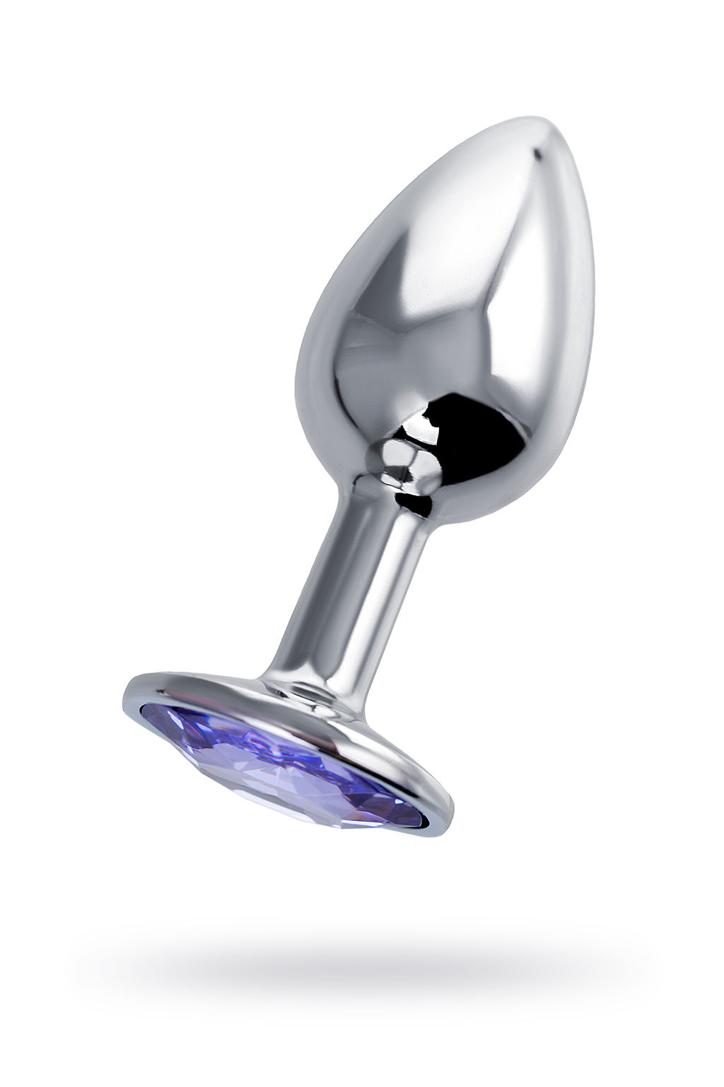 Анальная втулка Штучки-дрючки, металл, серебряная, с фиолетовым кристаллом, 7 см, 2,8 см, 50 г