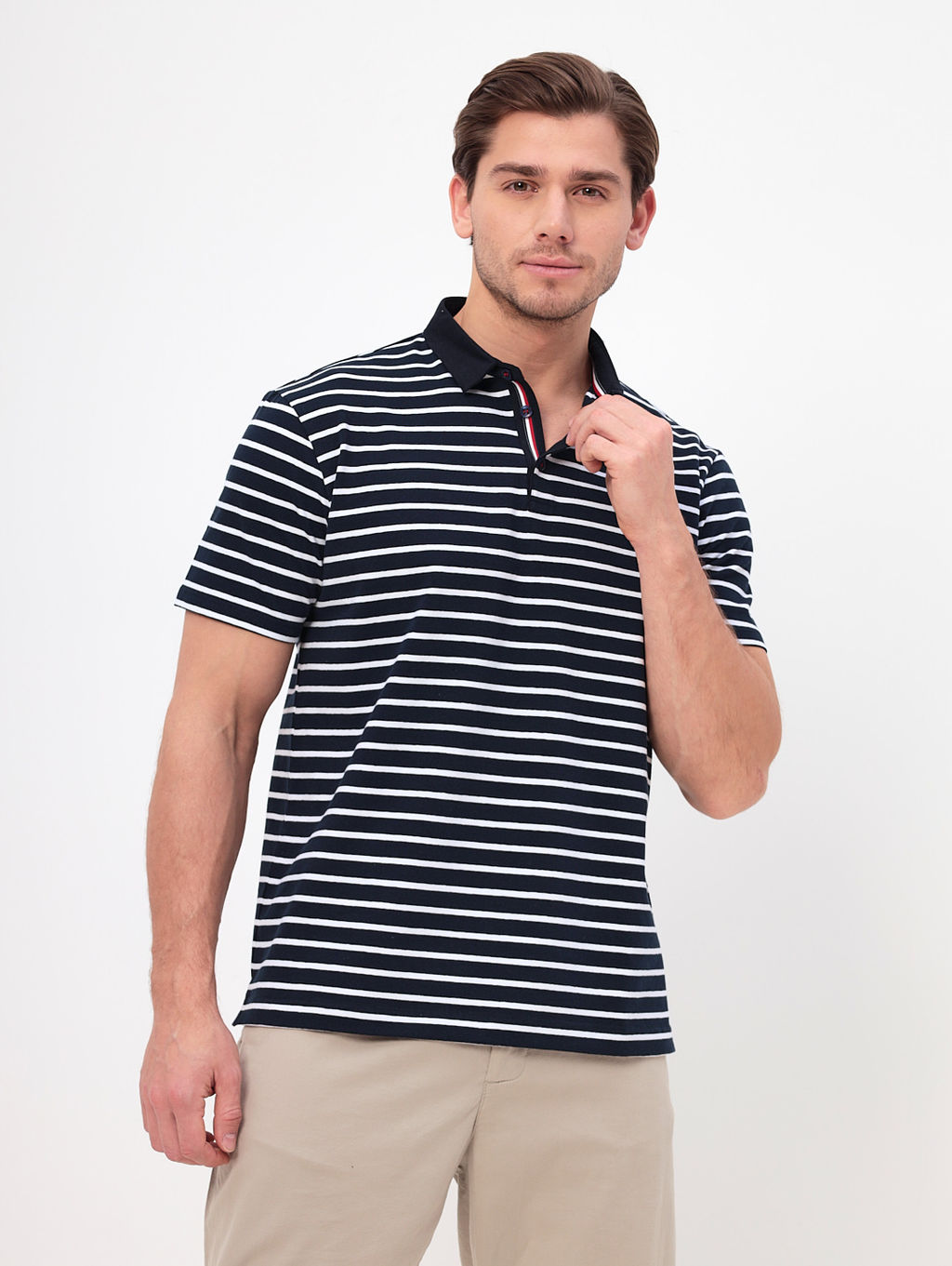 Джемпер мужской с воротником поло короткий рукав GREG G144-KD1246T-UT21 (белая полоска)