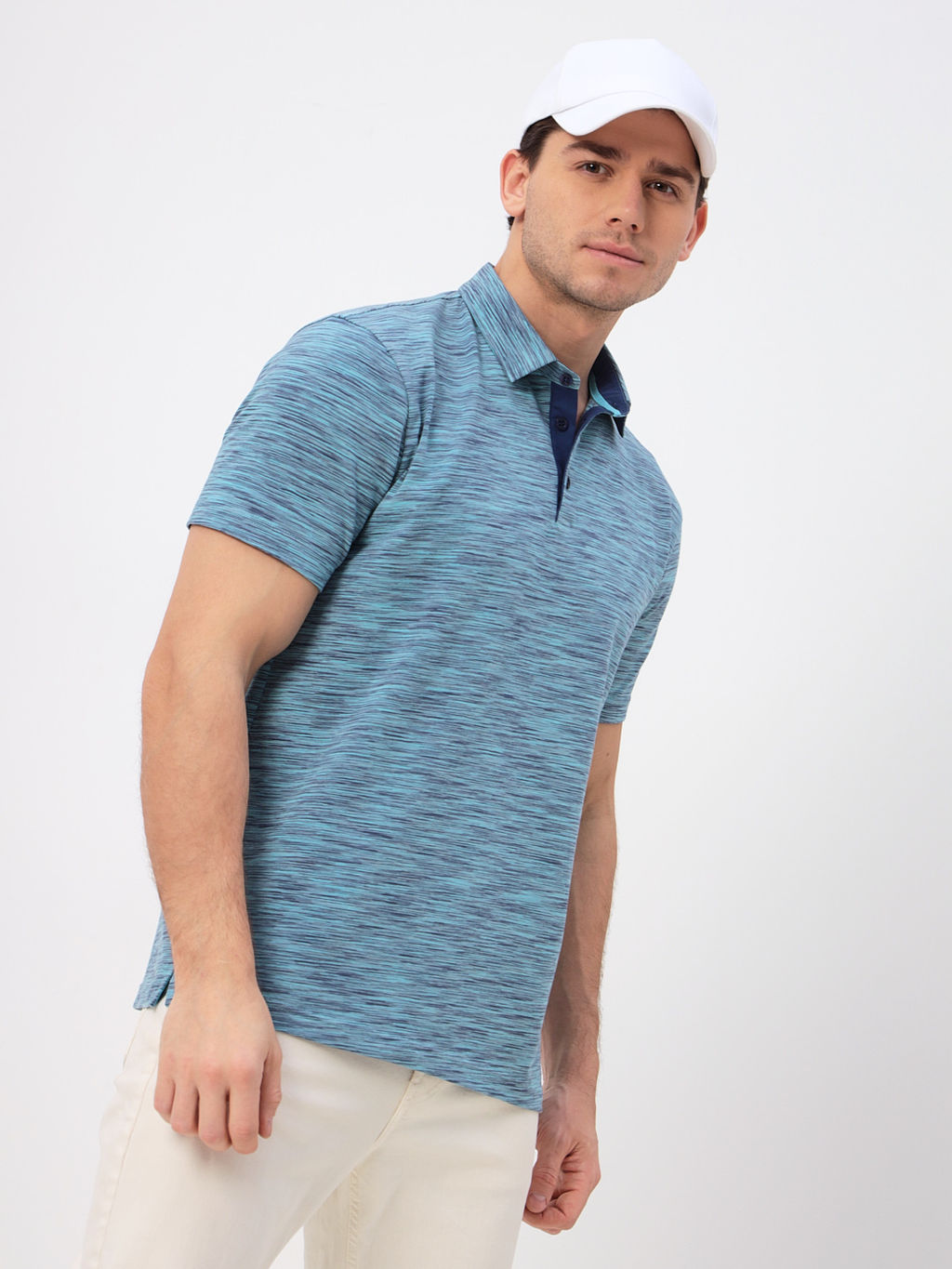 Джемпер мужской с воротником поло короткий рукав GREG G144-KM1246T-OR1051 (бирюзовый)