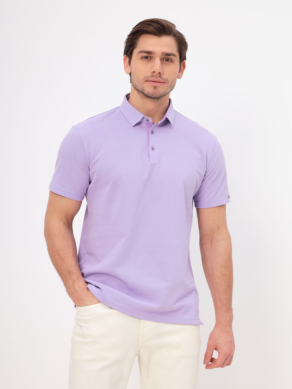 Джемпер мужской с воротником поло короткий рукав GREG G144-PO1246T-CTP1051 (сиреневый)