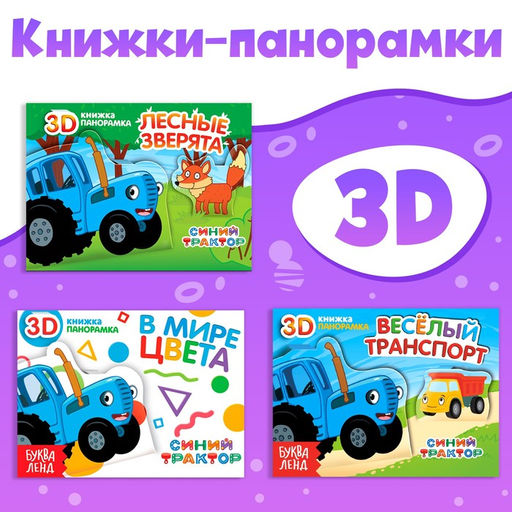 Набор книжки-панорамки 3D Синий трактор, 3 шт. по 12 стр