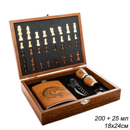 Фляжка 200 мл с шахматами + 2 стопки 25 мл, открывашка, воронка / FL-181 /уп 20/