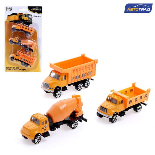 Набор металлических машин Строительная техника, 3 штуки, МИКС