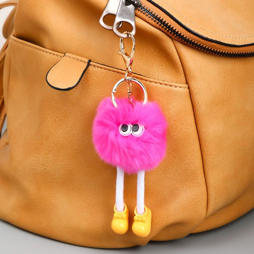 Пушистик на кольце с карабином "Чудик с длинными ножками в ботинках" ярко-розовый
