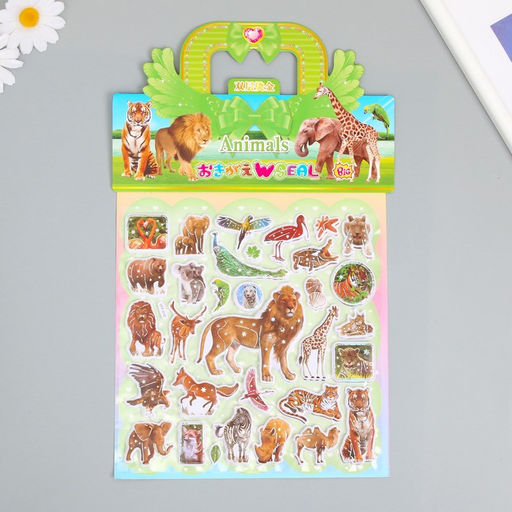 Наклейка пластик выпуклые "Звери и птицы" МИКС 2 листа 33,5х21,7 см