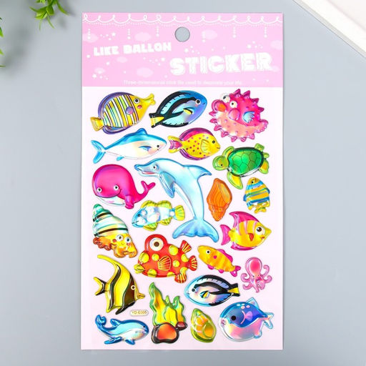 Наклейка пластик голография с металлическим отливом "Подводный мир" 9,5х27 см