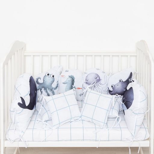 Бортики в кроватку Крошка Я Морские друзья (60х42см- 2шт, 30х42см- 4шт,30х30см- 4шт),100% хлопок