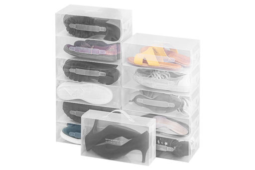 Набор 12 коробок для хранения женской обуви 30*18*10 см "Прозрачные" складные, с ручкой