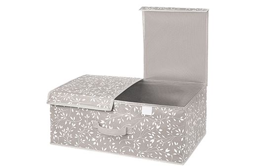 Короб складной для хранения 50*30*20 см "Белая веточка на сером" + 2 крышки на липучках + ручка
