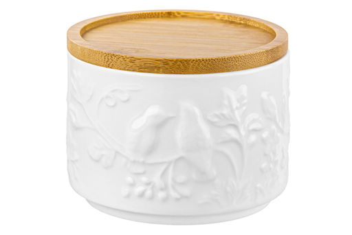 Банка д/хранения 250 мл 9,3*9,3*7 см "Птички на ветке" + дер. крышка-подставка с сил. упл.