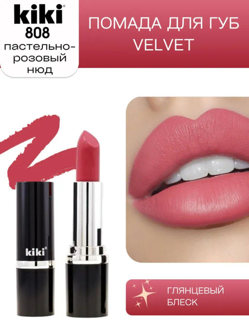 KIKI Помада для губ kiki VELVET 808 пастельно-розовый нюд