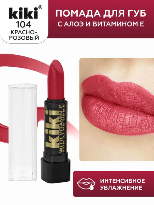 KIKI Помада для губ с aloe & vit E 104 красно-розовый с перламутром