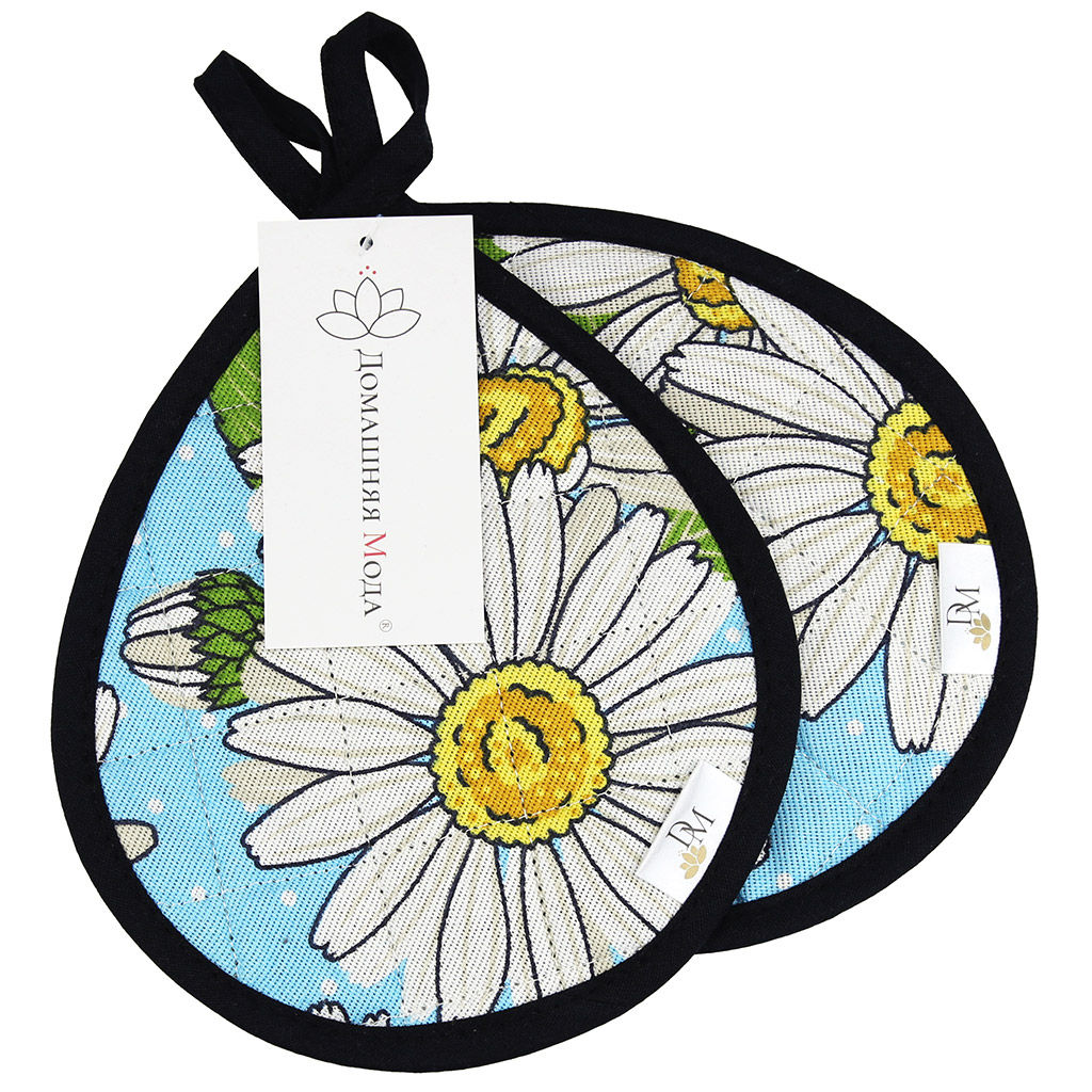 Кухонный комплект "Душистая ромашка, вид 4": прихватка 18х20см форма "Капелька" - 2шт, рогожка 171г/м2, хлопок 100%, наполнитель - ватин 280г/м2, на пластмассовом подвесе, "Домашняя мода" (Россия)