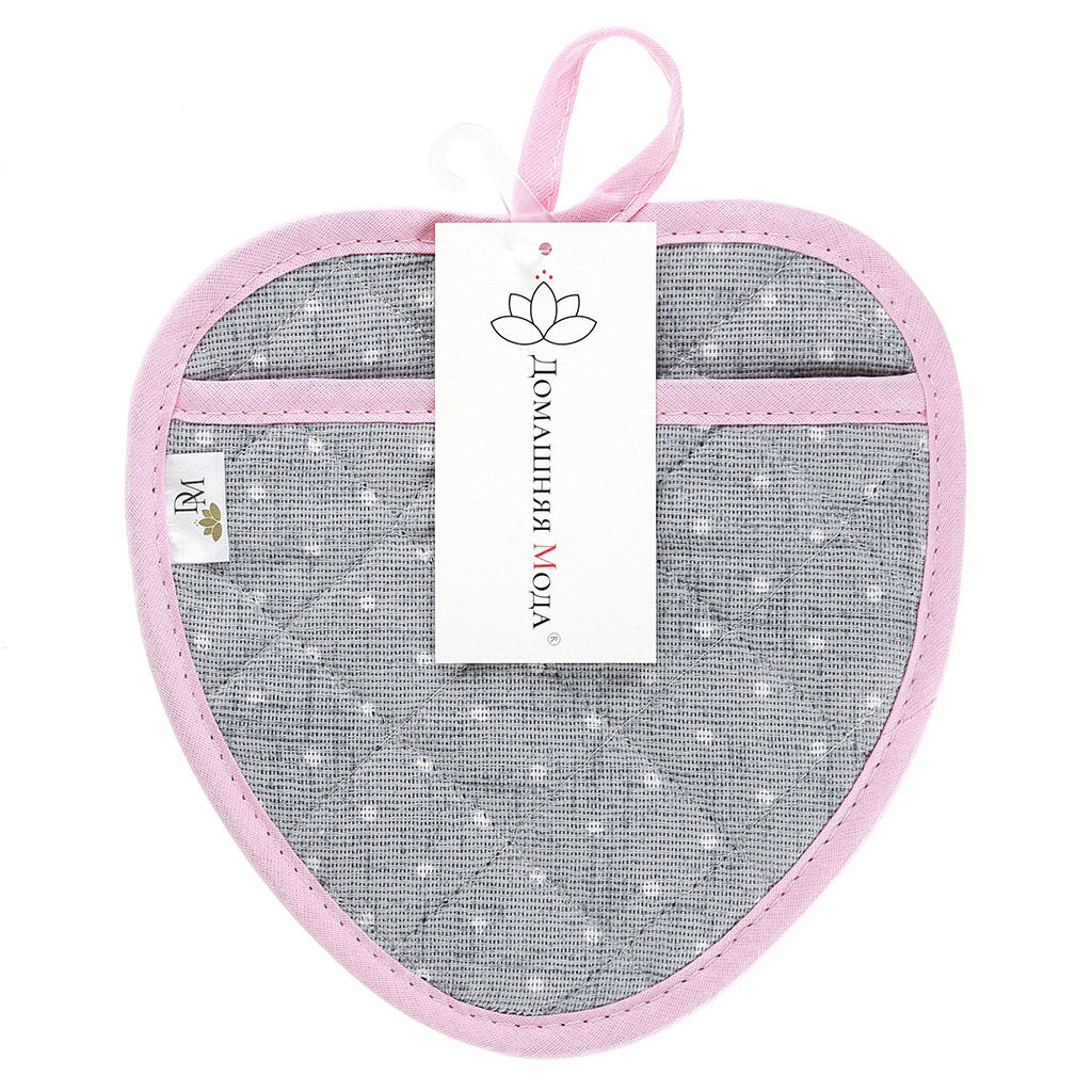 Прихватка с запахом 20х20см "Горошек на льне", форма "Клубника", рогожка 171г/м2, хлопок 100%, наполнитель - ватин 280г/м2, на пластмассовом подвесе, "Домашняя мода" (Россия)