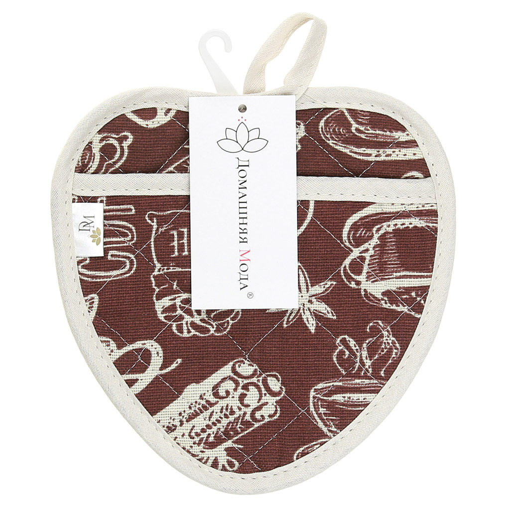 Прихватка с запахом 20х20см "Эспрессо, вид 1", форма "Клубника", рогожка 171г/м2, хлопок 100%, наполнитель - ватин 280г/м2, на пластмассовом подвесе, "Домашняя мода" (Россия)