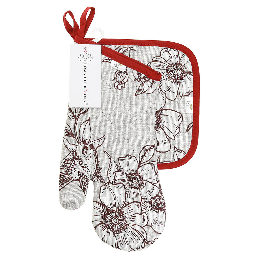 Кухонный комплект "Парадиз": прихватка-варежка 15х30см + прихватка 20х20см, рогожка 171г/м2, хлопок 100%, наполнитель - ватин 280г/м2, на пластмассовом подвесе, "Домашняя мода" (Россия)