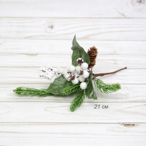 Ветка искусственная 21 см с шишками / N127-297/1 /уп 10/900/