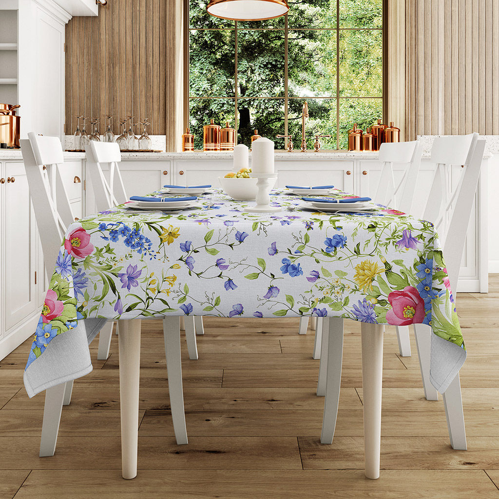 Скатерть 150х145см "Летний сад", длина стола до 110см, на 4 персоны, рогожка (хлопок 100%) 171г/м2, упаковка классическая, пакет ПВХ 28х41см, "Домашняя мода" (Россия)