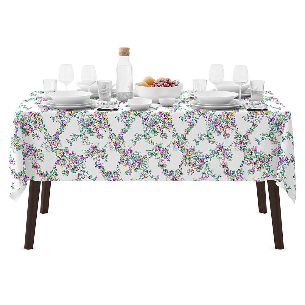 "Сиреневый букет К" Скатерть 240х145см, длина стола до 200см, на 10-12 персон, хлопок "Премиум" 186г/м2, "Домашняя мода" (Россия)