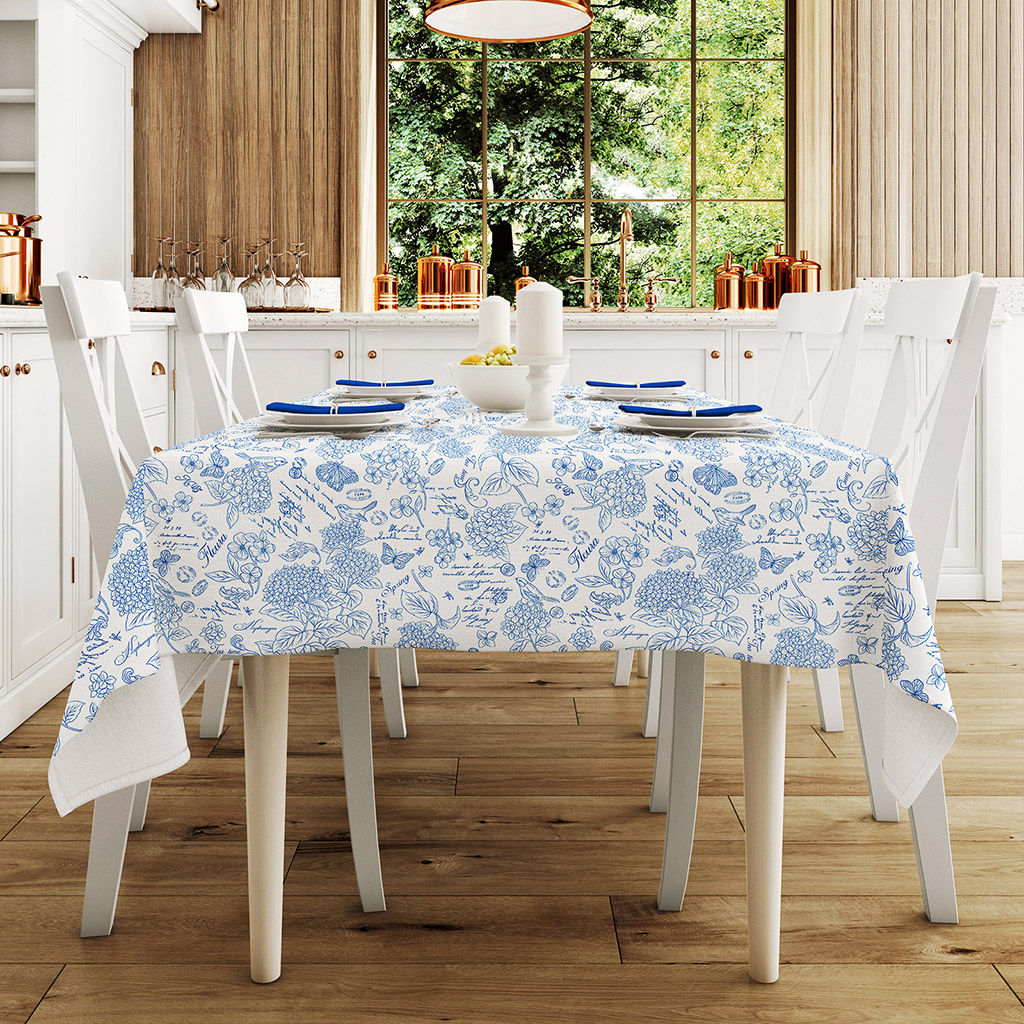 "Жозефина, синий" Скатерть 220х145см, длина стола до 180см, на 8-10 персон, хлопок "Премиум" 186г/м2, "Домашняя мода" (Россия)