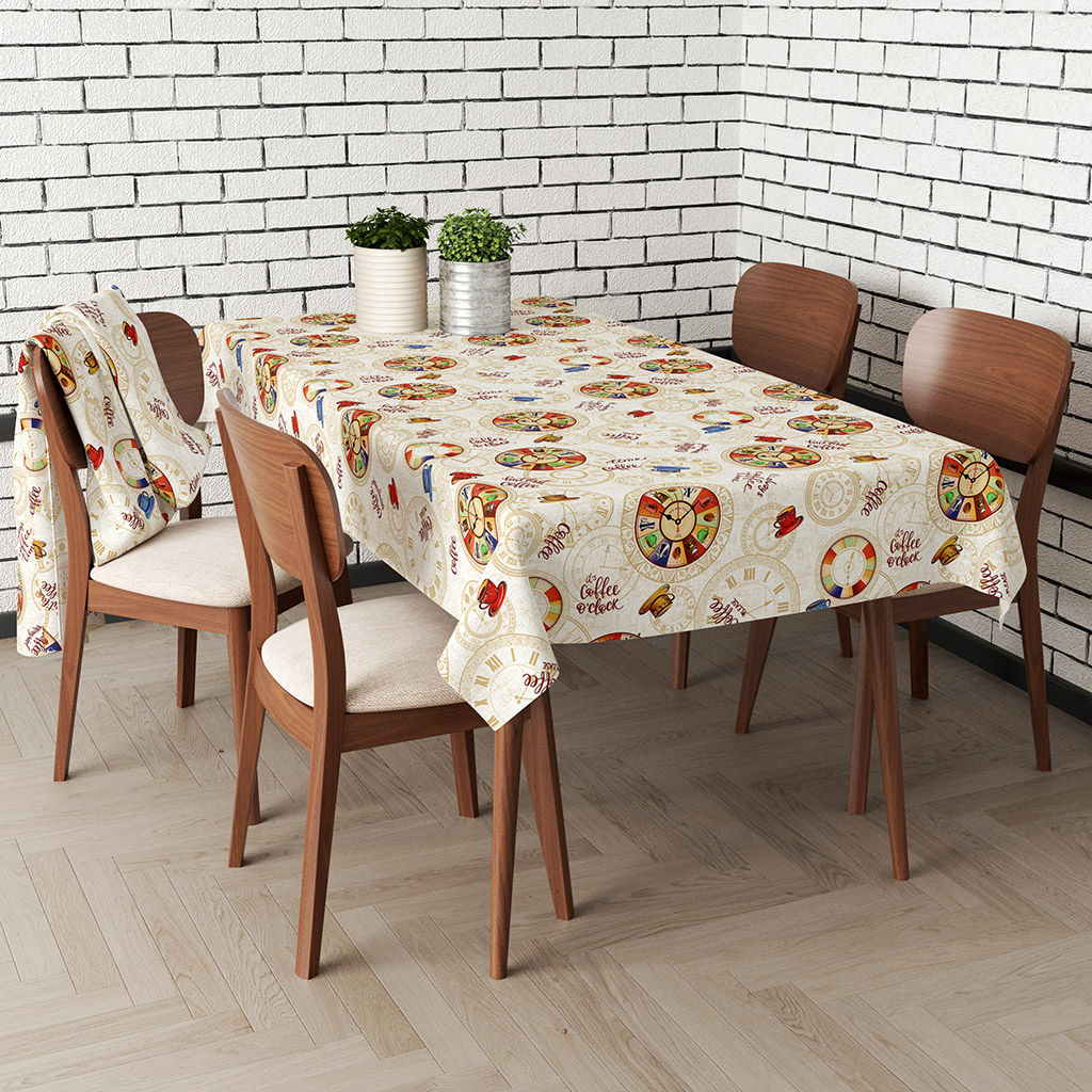 "Время кофе" Скатерть 150х145см, длина стола до 110см, на 4 персоны, рогожка 171г/м2, хлопок 100%, "Домашняя мода" (Россия)