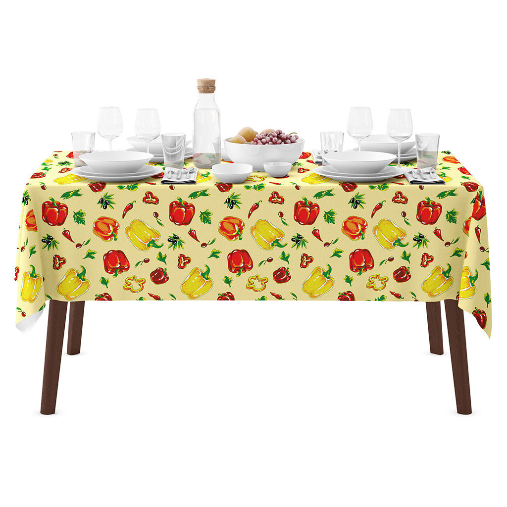 Скатерть 220х145см "Перцы, вид 1", длина стола до 180см, на 8-10 персон, рогожка (хлопок 100%) 171г/м2, упаковка классическая, пакет ПВХ 28х41см, "Домашняя мода" (Россия)