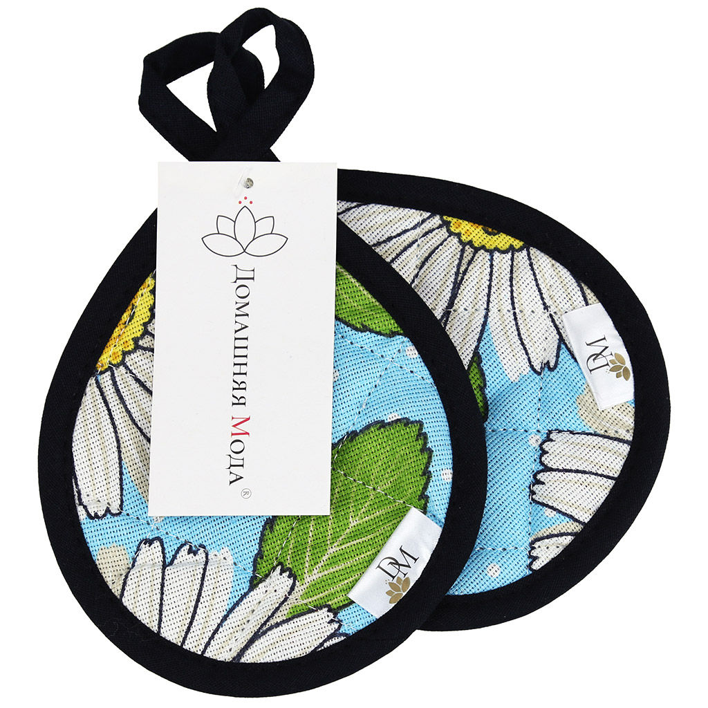 Кухонный комплект "Душистая ромашка, вид 4": прихватка 12х18см форма "Капелька" - 2шт, рогожка 171г/м2, хлопок 100%, наполнитель - ватин 280г/м2, на пластмассовом подвесе, "Домашняя мода" (Россия)