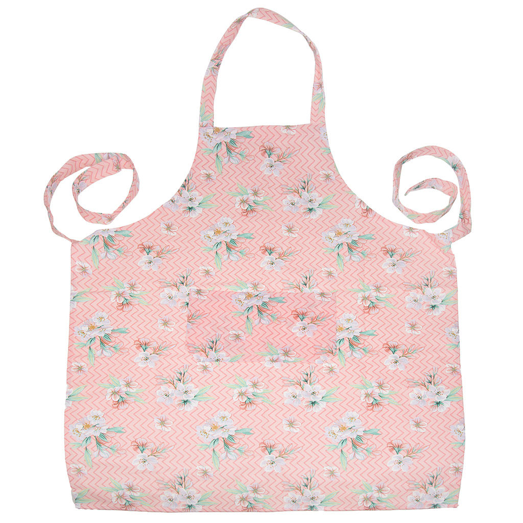 "Жасмин, фламинго/зигзаг" Фартук "Классический" 73х84см, ткань - рогожка 186г/м2, хлопок-премиум 100%, с карманом, на завязках (Россия)