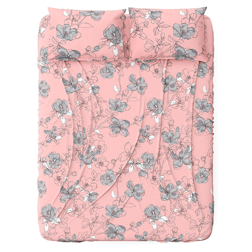 Простыня Евростандарт "Цветы сакуры" пудровый 240х220см, бязь "Комфорт" 121г/м2, хлопок 100%, упаковка "классическая" ПВХ 28х41см, "Домашняя мода" (Россия)