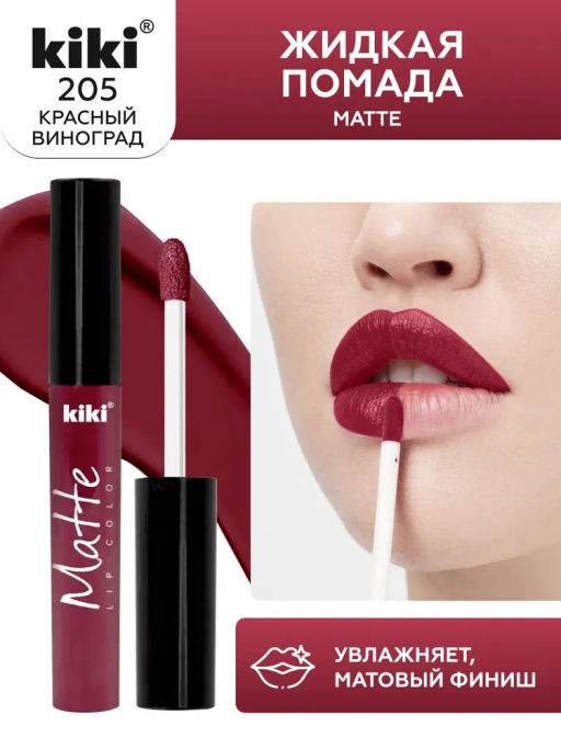 KIKI Жидкая помада для губ Matte lip color 205 красный виноград