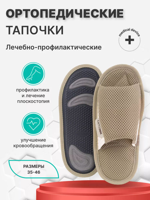 Тапочки анатомические с массажным эффектом (2 резинки) Орто.Ник ТМ-11(б) бежевый