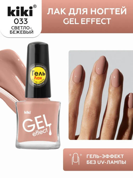 KIKI Лак для ногтей гель-эффект 033 светло-бежевый, 6 мл