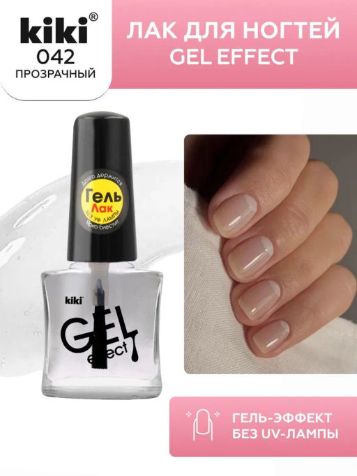KIKI Лак для ногтей гель-эффект 042 прозрачный, 6 мл